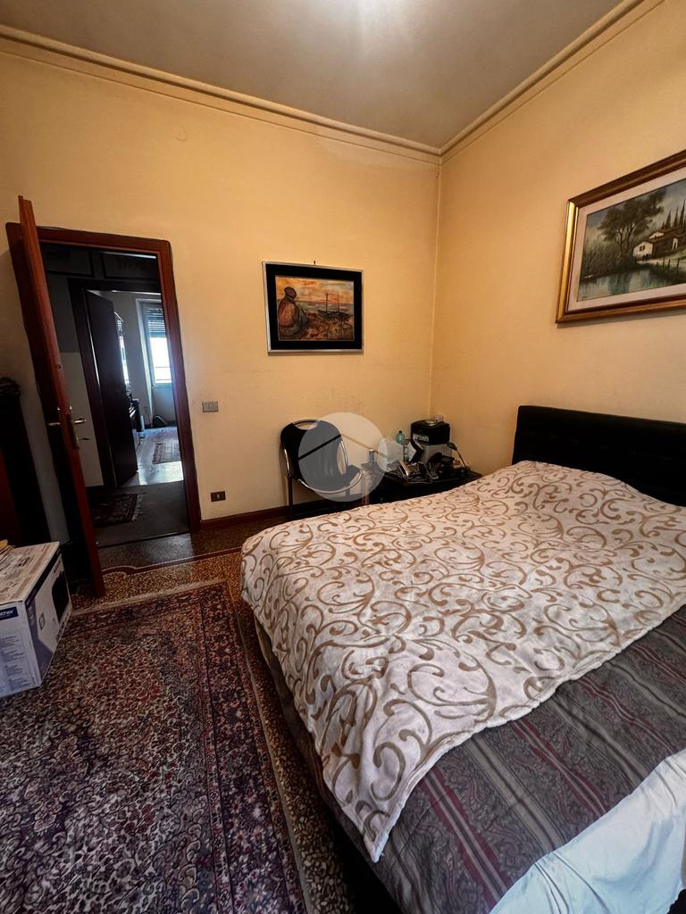 Internamente l'immobile è caratterizzato da pavimenti d'epoca in marmo, infissi in legno vetro singolo, impianto di climatizzazione e riscaldamento centralizzato con termo valvole.